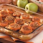 Prep Day: Cut peeled sweet potatoes into 1-inch cubes. Cut peeled apples into 1/2-inch-thick slices. Stir together apple juice, melted butter, brown sugar, and grated orange rind in a large zip-top plastic freezer bag until blended. Add cubed sweet potatoes and sliced apples. Seal bag, and toss to coat.