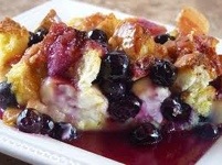 Assembly Directions: Spray treat or grease a 8×8 baking dish. Arrange half of the bread cubes in the dish. Top with cream cheese cubes. For each recipe, sprinkle 1/2 C. blueberries over the cream cheese. Top with the remaining bread cubes.