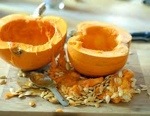 Use a large spoon or scoop to remove the seeds, and set aside (Seeds are edible and nutritious too. Save for roasting.)
