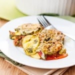 Prep Day: Preheat oven to 375 degrees. Grease 8×8 baking dish with a little of the pesto. Layer tomatoes, zucchini and squash in pan, slightly overlapping and brushing with pesto in between layers. Sprinkle with salt and pepper. Top with shredded Gruyere cheese. Bake for 45 minutes until bubbly and cheese is melted.