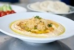 In small bowl or measuring cup, whisk together the tahini and 2 Tbsp oil. With the machine still running, add the oil-tahini mixture in a steady stream through the feed tube. Continue to process until smooth and creamy, scraping down sides as needed. Transfer to a bowl and, if desired, top with some reserved chick peas and drizzle with olive oil.