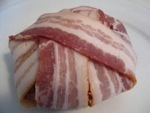 Lay two slices of bacon on the counter in an X. Form 1/8 of the mixture into a patty and set it on top of the center of the X. Fold the ends of the bacon over the top. Repeat with remaining meat mixture. Wrap individually and freeze.