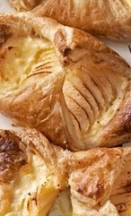 Preheat oven to 400°F. Roll each pastry strip to a 6-inch square. Divide cheese mixture among squares. Top with apples, layering slices.
