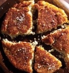 Cover skillet with a large inverted plate, invert the rösti over onto plate, then slide it back into the skillet, cooked side up; cook until golden brown on the bottom, about 20 minutes. Transfer to a cutting board, sprinkle with salt, and cut into wedges to serve.