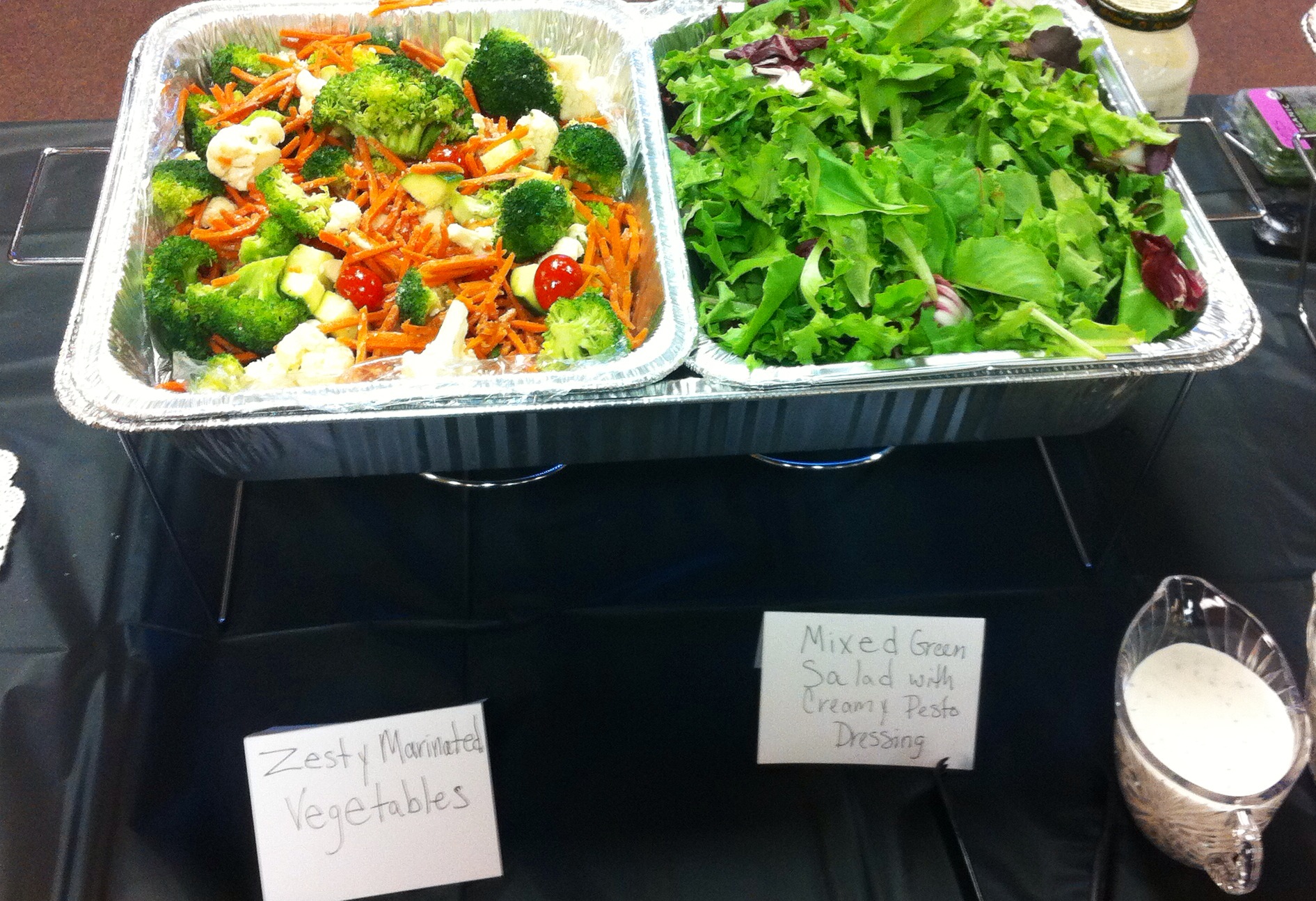 Salads – Marinated Vegetables and Mixed Green Salad with Creamy Pesto Dressing