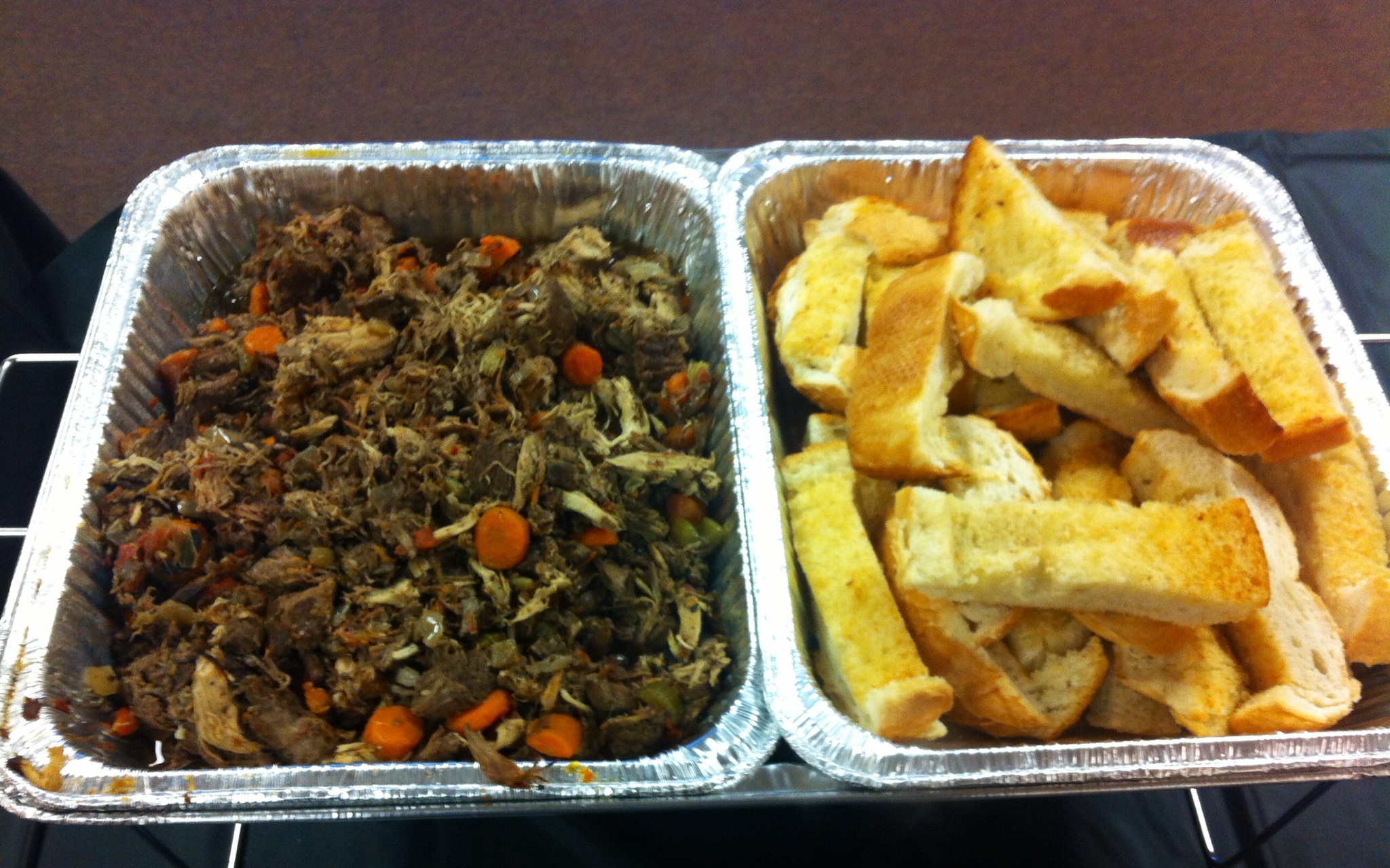 Main Dish – Zasugo (Italian Braised Beef Short Ribs and Pork Shoulder) with a side of Garlic Bread