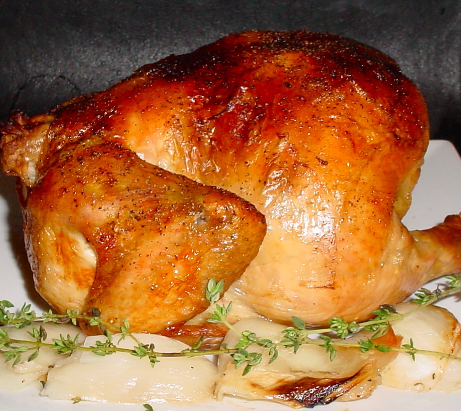 Roast Chicken Over Onions