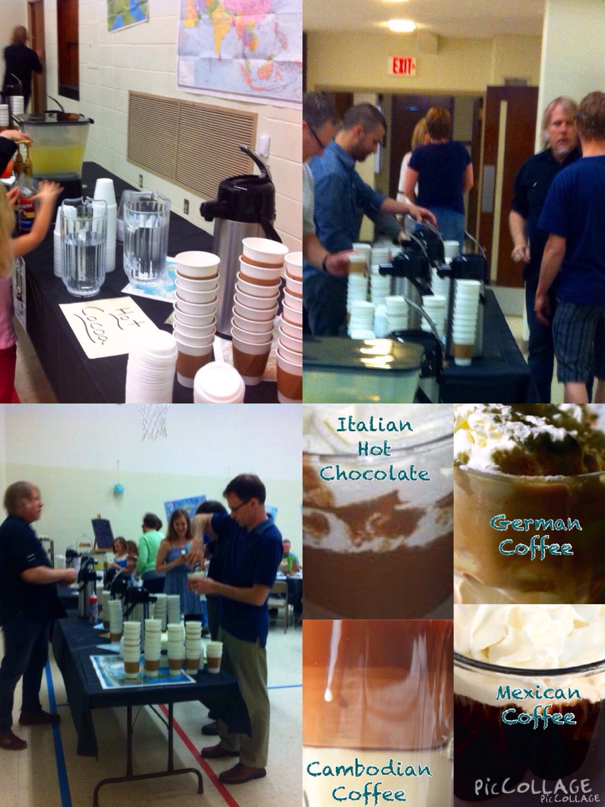 • International Beverages: Water, American Lemonade with Raspberry or Strawberry Mix-ins, Italian Hot Chocolate, Cambodian Coffee, German Coffee, Mexican Coffee, Regular and Decaf Coffee