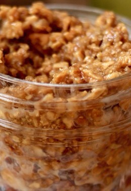 Dump grounds nuts into the bowl of a stand mixer fitted with a paddle. Add honey, brown sugar and salt. Blend on low speed until thickened; about 1 minutes.