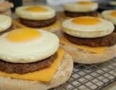 Prep Day Directions: Scramble eggs and bake in greased muffin tins at 350 for 10-15 minutes. Cool, flash freeze, and place in freezer zip lock bag. Place sausage patties and cheese in seperate bags and place in freezer bag. Freezer English muffins.