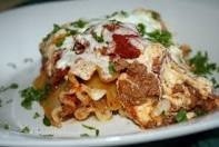 Prep Day Directions: Preheat oven to 350 degrees F. Lightly grease 3-quart rectangular baking dish; set aside. Cook pasta according to package directions. Drain; set aside. Meanwhile, in large skillet cook sausage and onion until meat is browned and onion is tender. Drain fat, Return sausage and onion to skillet. Stir in green salsa. In prepared baking dish layer half of the cooked pasta, half the sausage mixture, and half the cheese. Repeat layers.